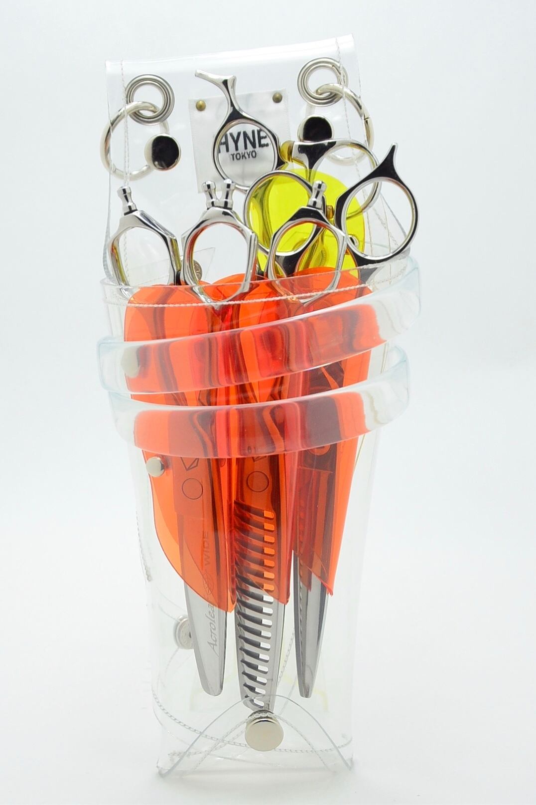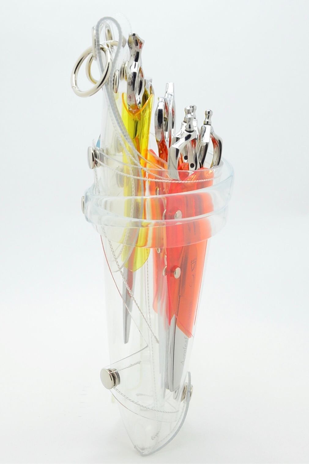 このシザーケースは、あなたのシザーを入れる事によって完成します。透明なシザーケースから仕事道具であるシザーが魅える事が最大のデザインの魅力となっています。