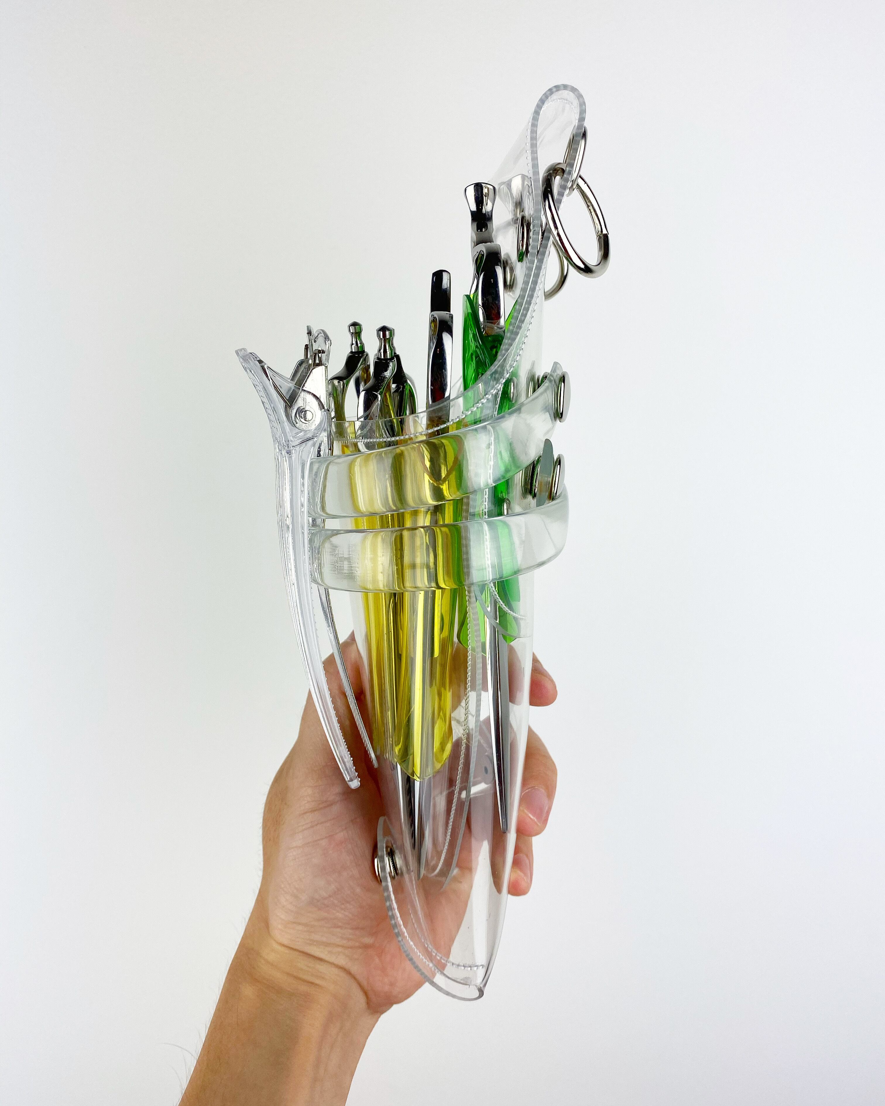 PVCの特性であるクリア(透明)である事で、美容師の仕事道具であるシザーのこれまでなかった魅せ方を提案しています。