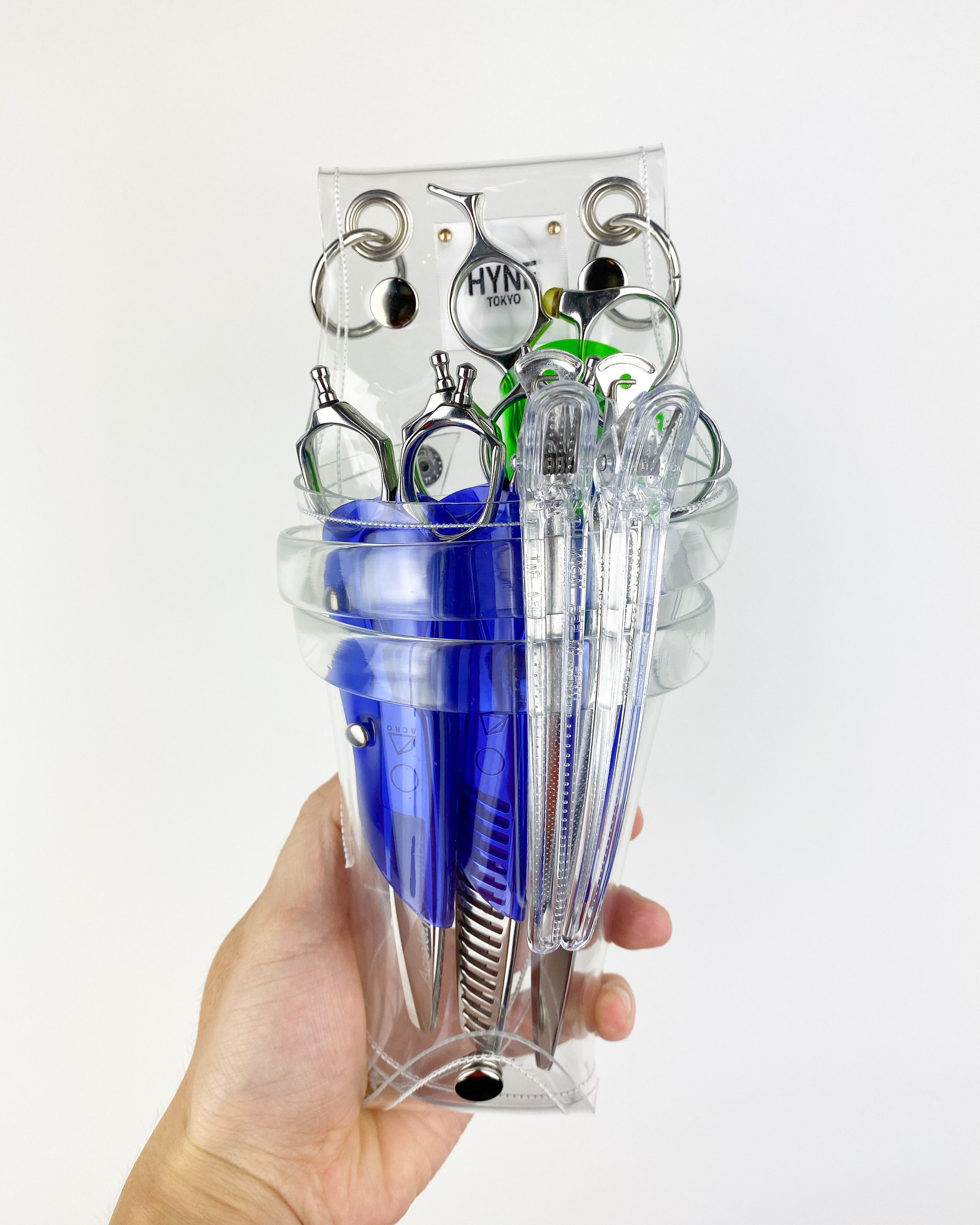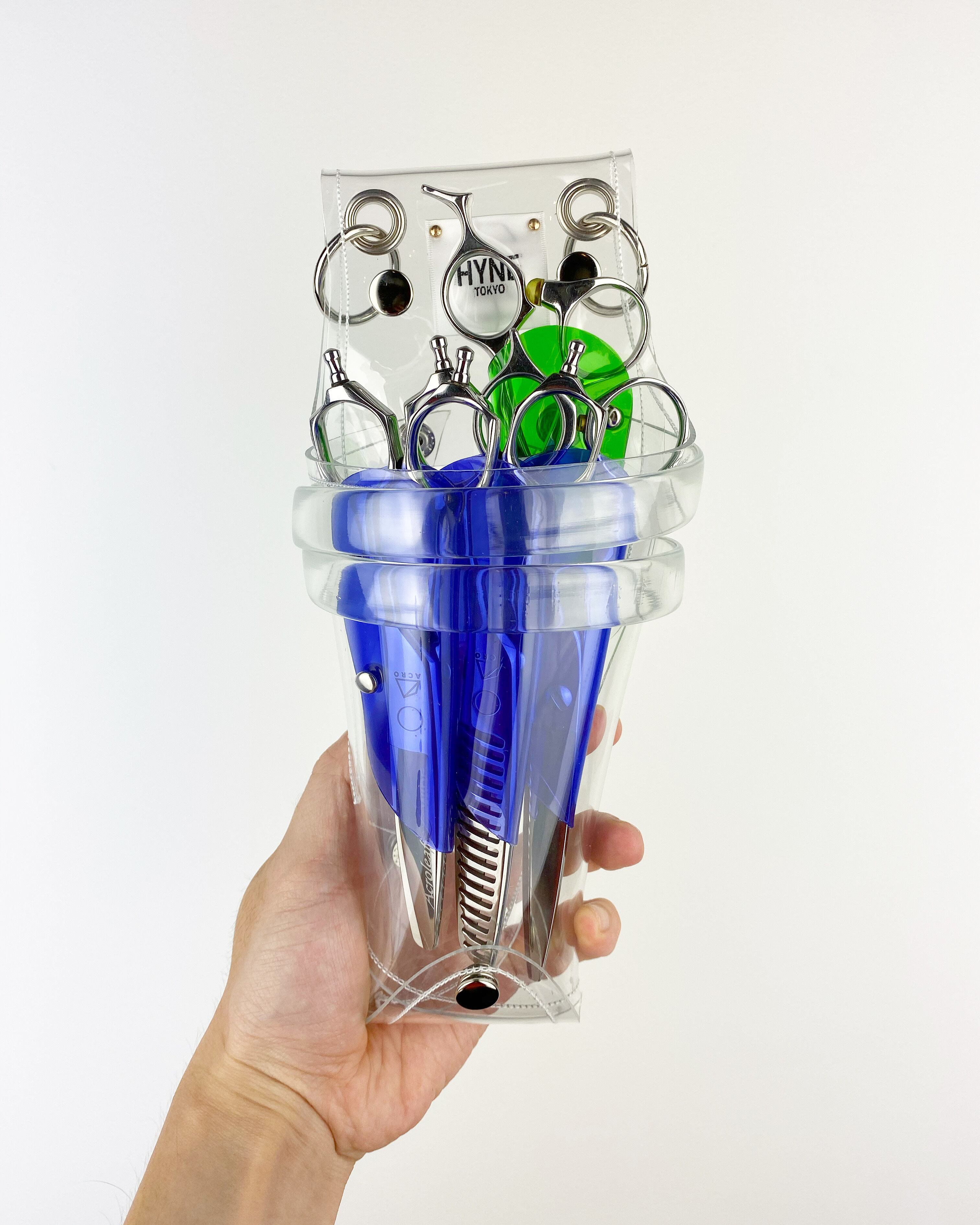 このシザーケースは、あなたのシザーを入れる事によって完成します。透明なシザーケースから仕事道具であるシザーが魅える事が最大のデザインの魅力となっています。