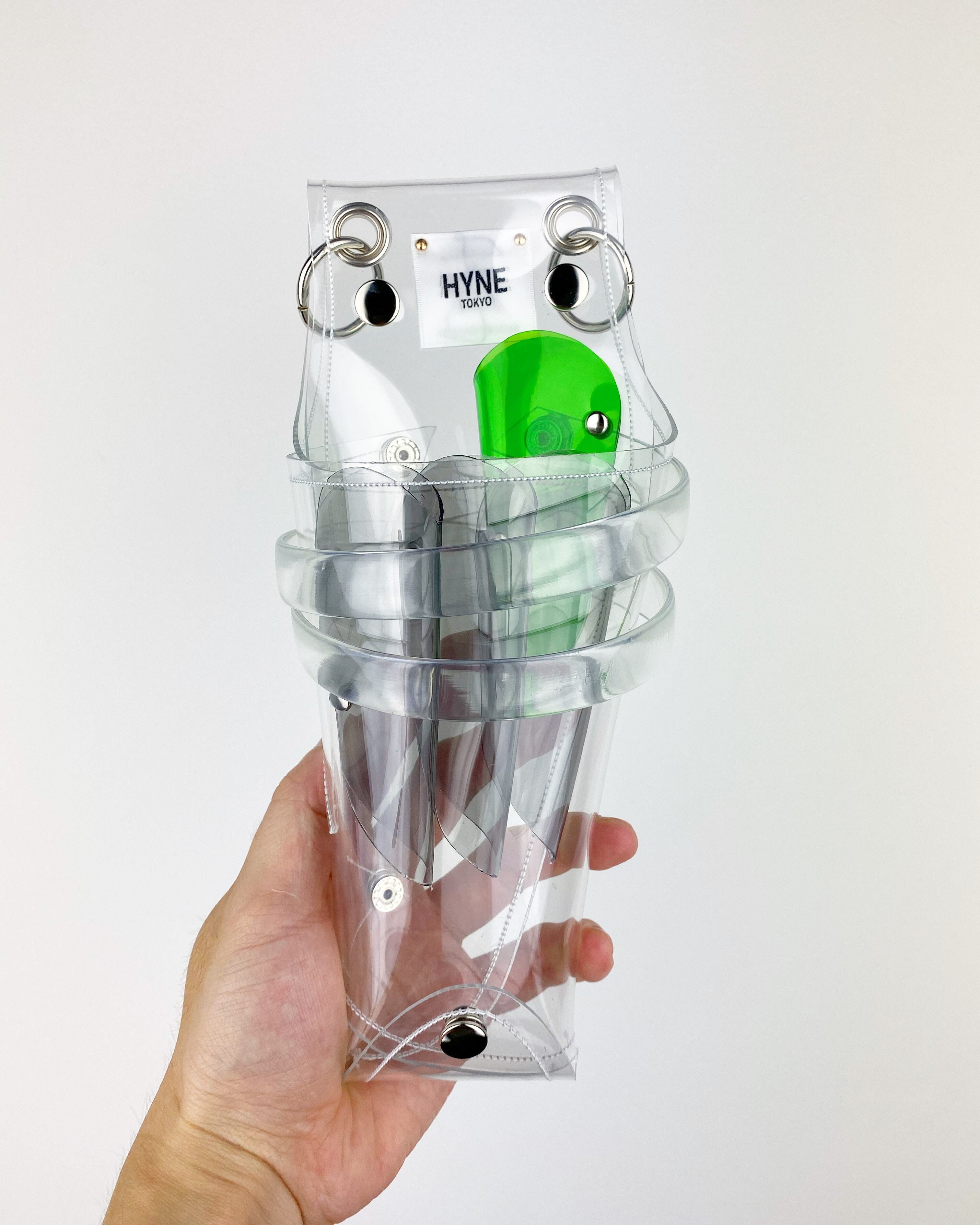 PVCの特性であるクリア(透明)である事で、美容師の仕事道具であるシザーのこれまでなかった魅せ方を提案しています。