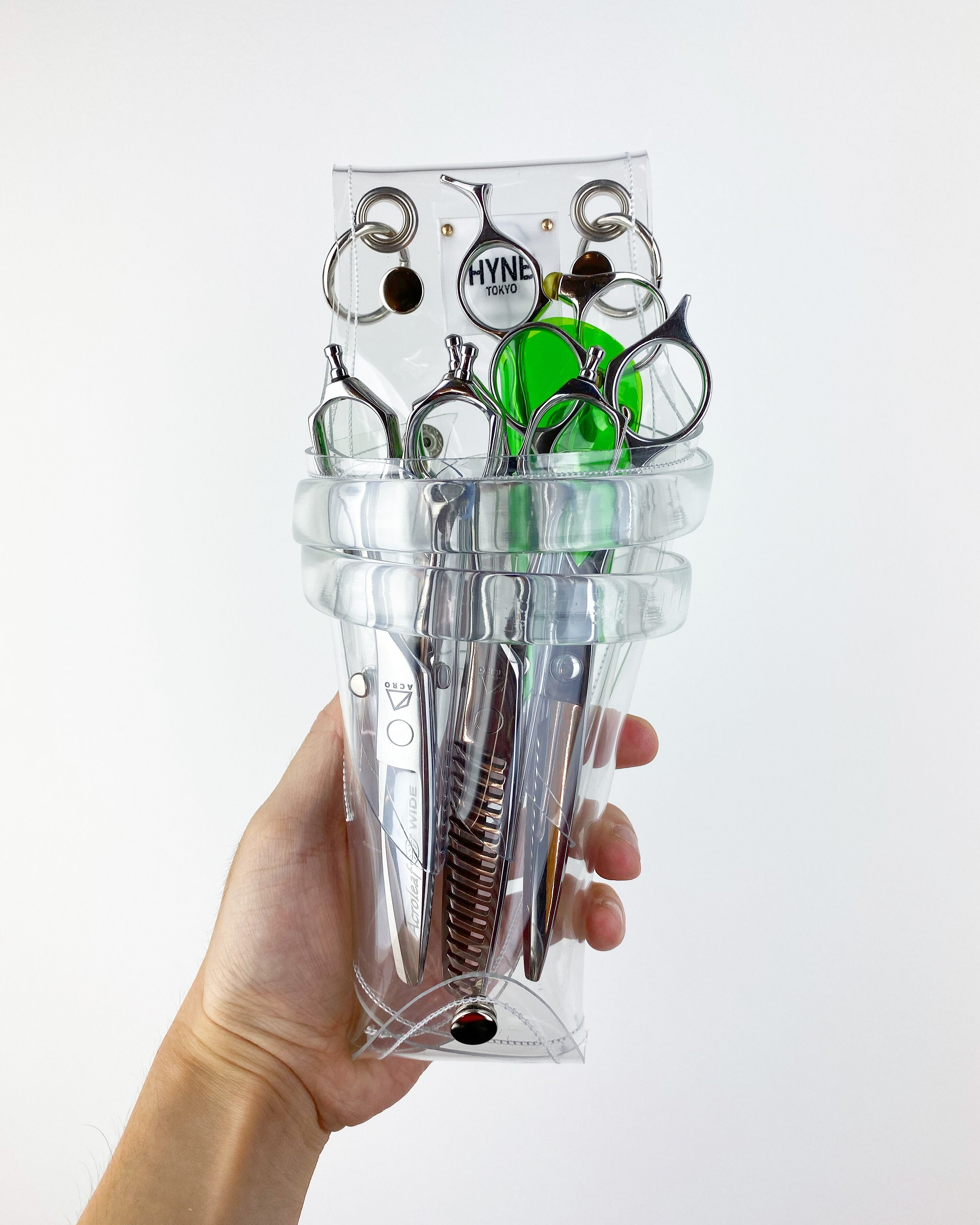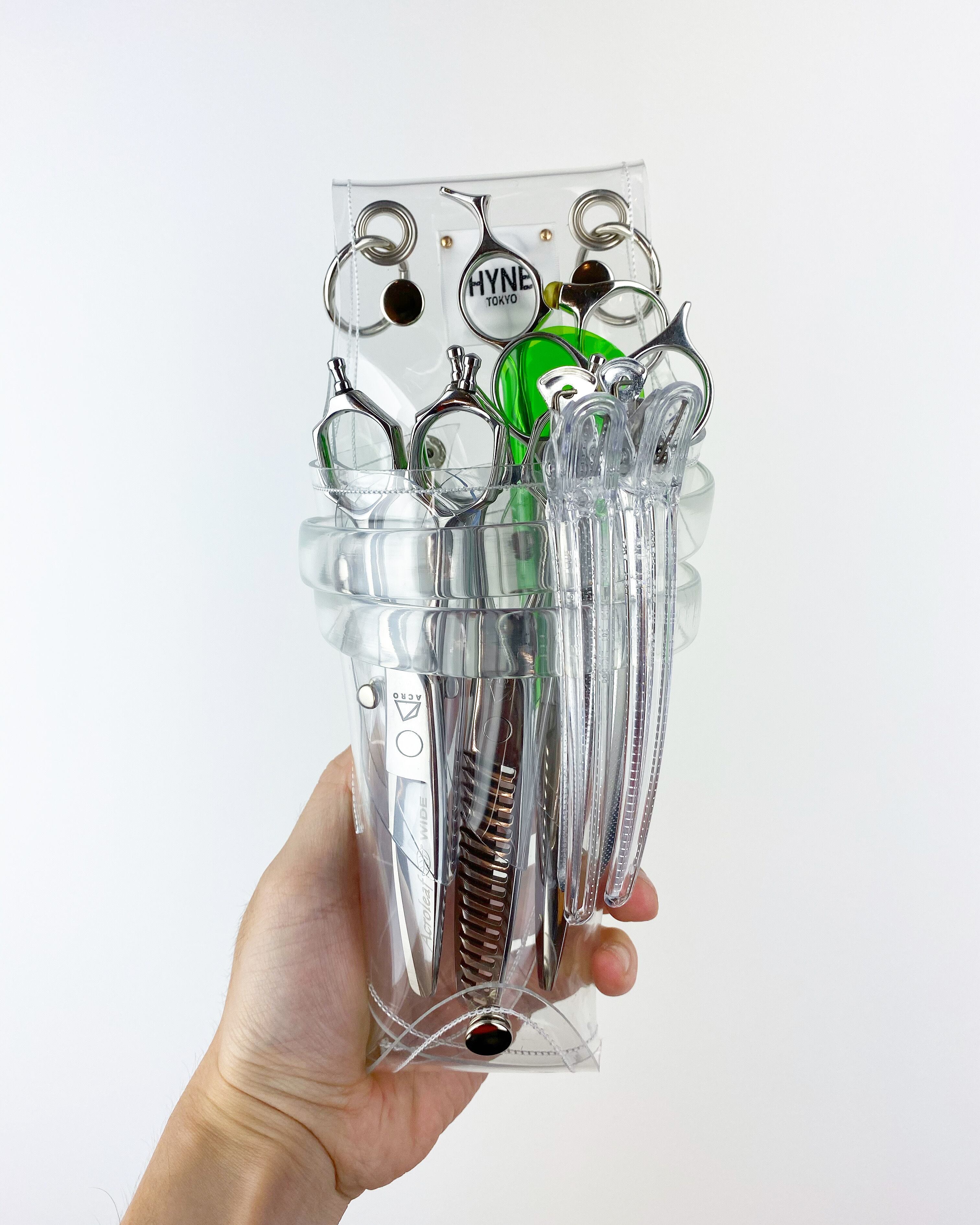 このシザーケースは、あなたのシザーを入れる事によって完成します。透明なシザーケースから仕事道具であるシザーが魅える事が最大のデザインの魅力となっています。