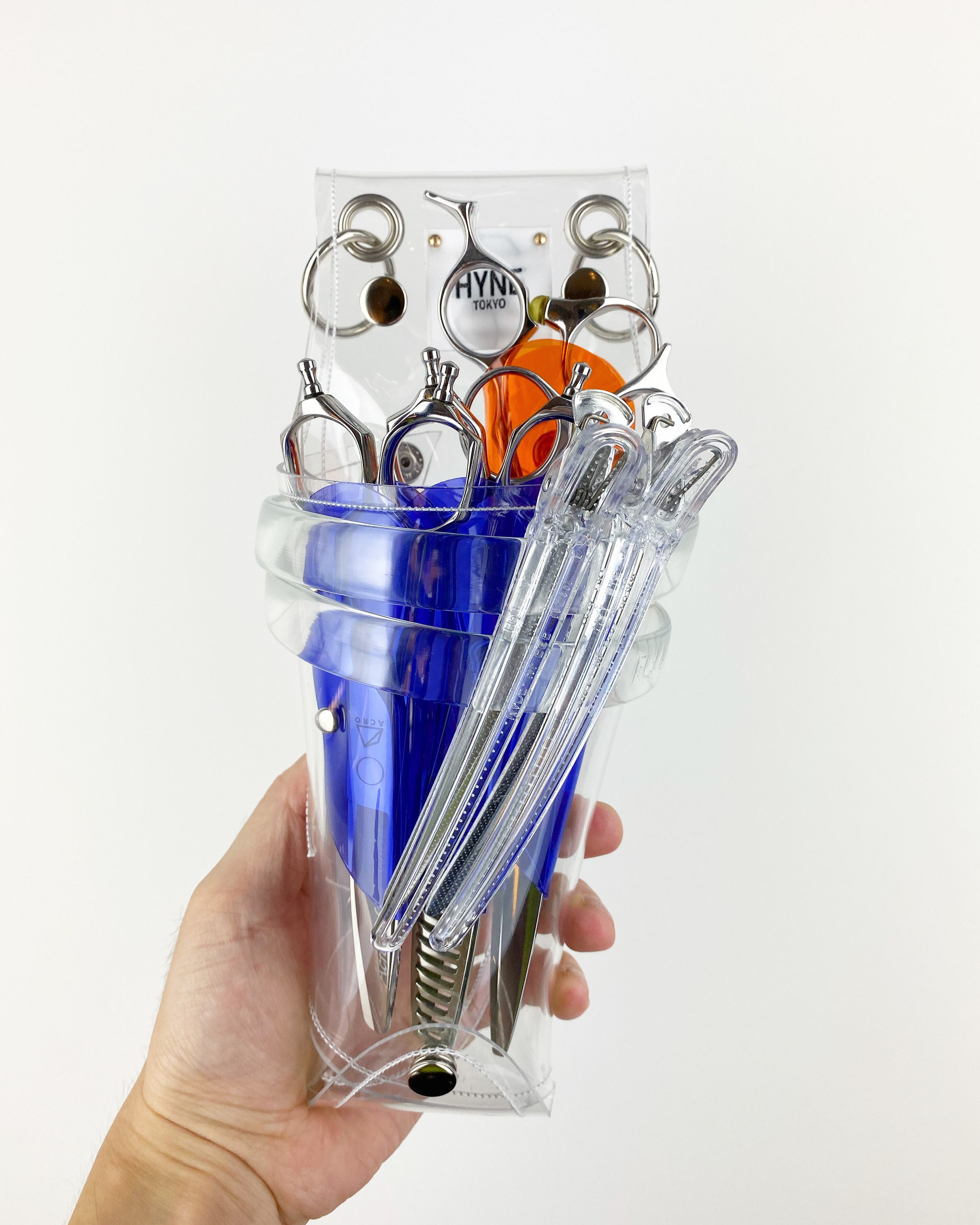 このシザーケースは、あなたのシザーを入れる事によって完成します。透明なシザーケースから仕事道具であるシザーが魅える事が最大のデザインの魅力となっています。