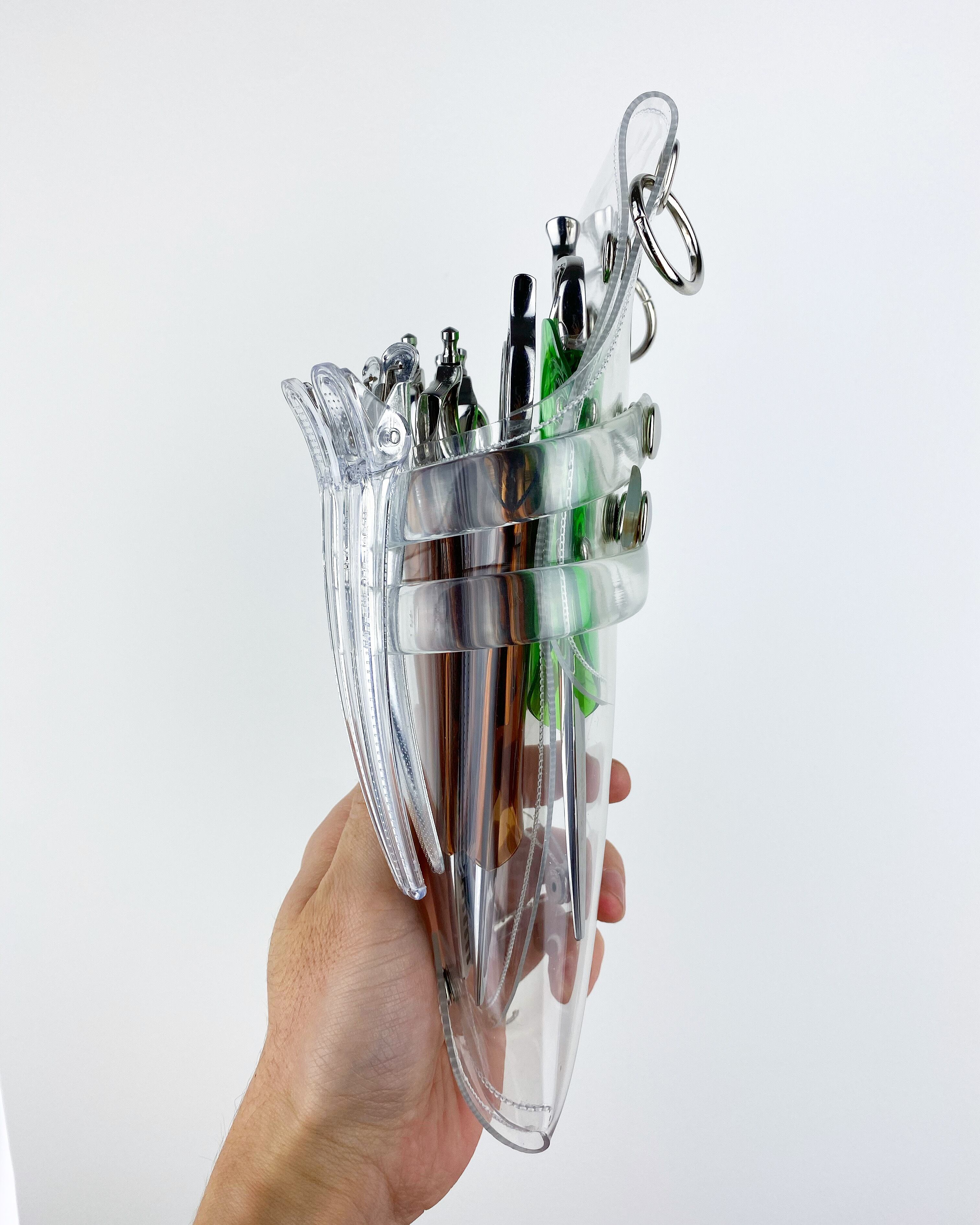 PVCの特性であるクリア(透明)である事で、美容師の仕事道具であるシザーのこれまでなかった魅せ方を提案しています。