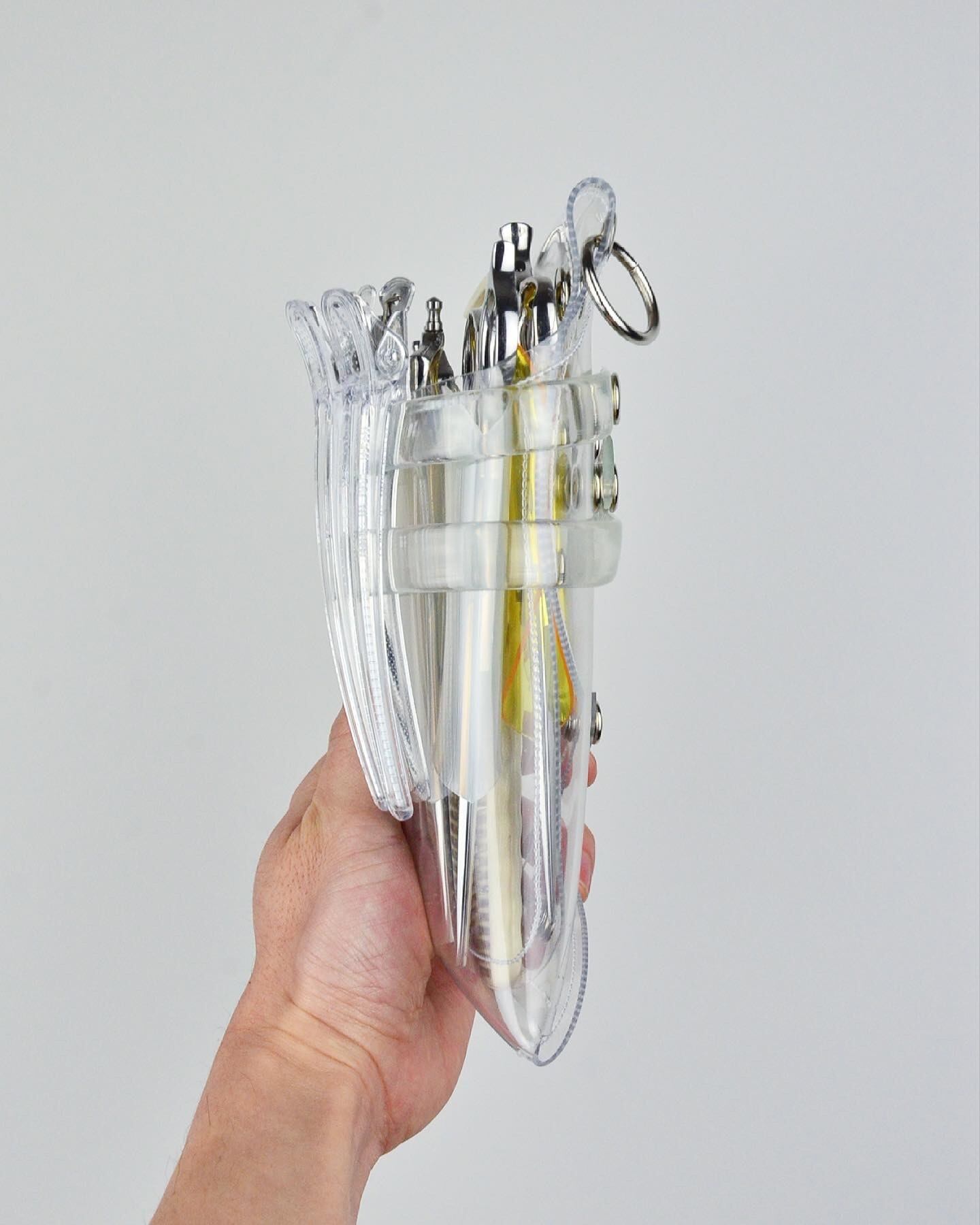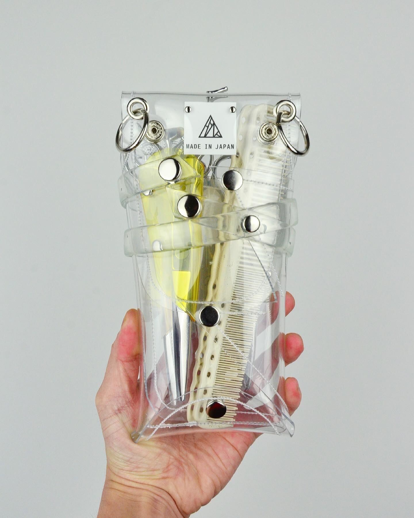 このシザーケースは、あなたのシザーを入れる事によって完成します。透明なシザーケースから仕事道具であるシザーが魅える事が最大のデザインの魅力となっています。