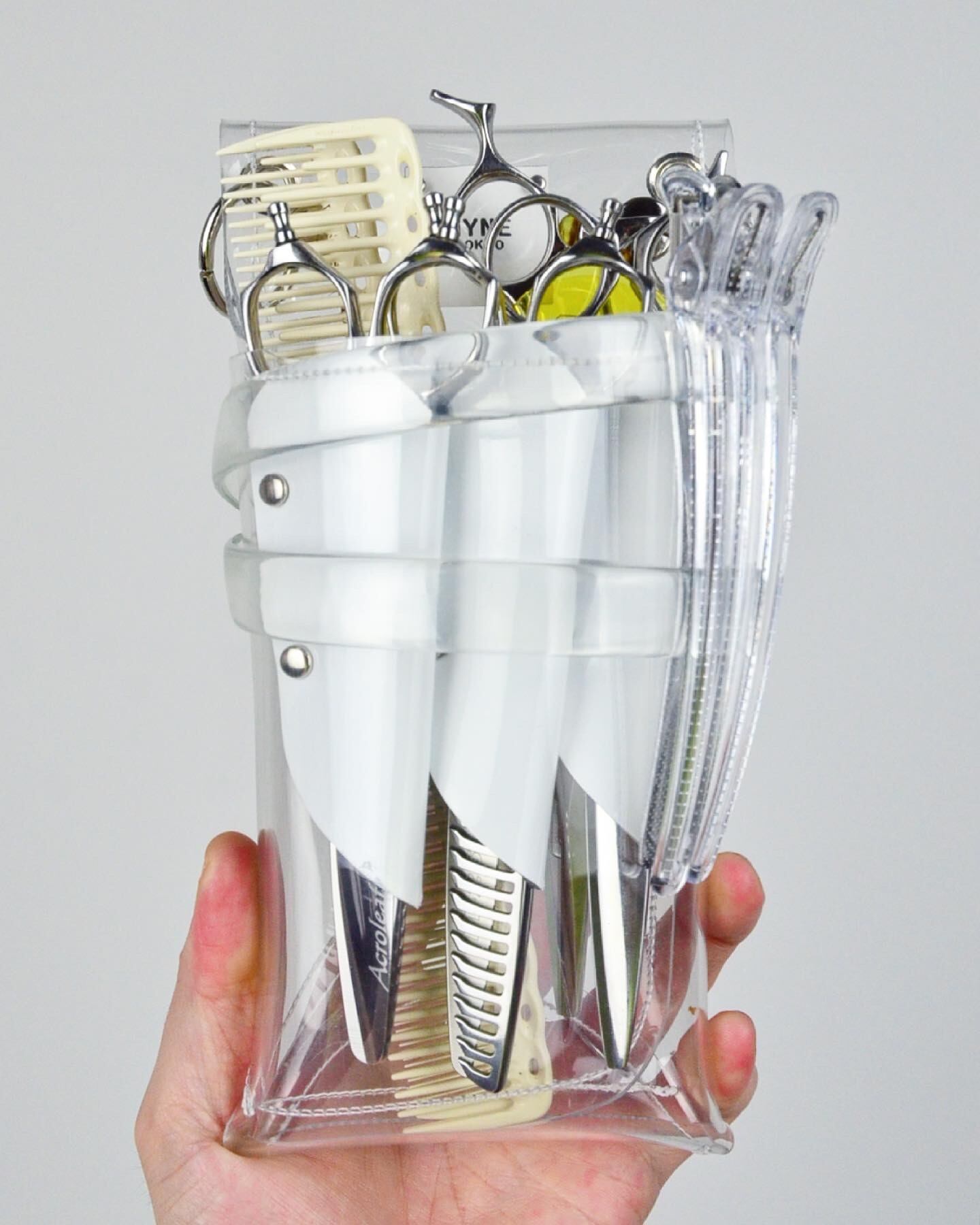 内田聡一郎さんと浦さやかさんが代表の東京の人気サロン「QUQUTOKYO」と世界で初めて"透明なシザーケース"を考案開発した「HYNETOKYO」のコラボプロダクトになります。
