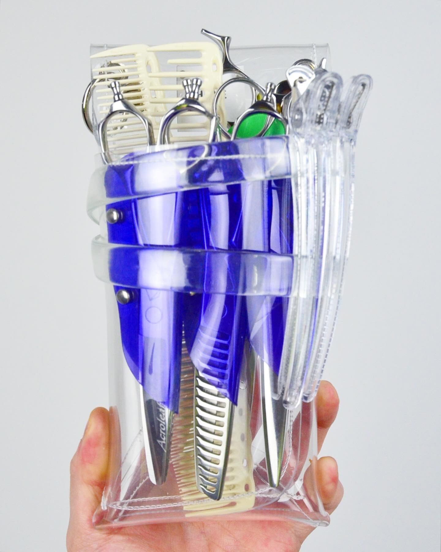 このシザーケースは、あなたのシザーを入れる事によって完成します。透明なシザーケースから仕事道具であるシザーが魅える事が最大のデザインの魅力となっています。