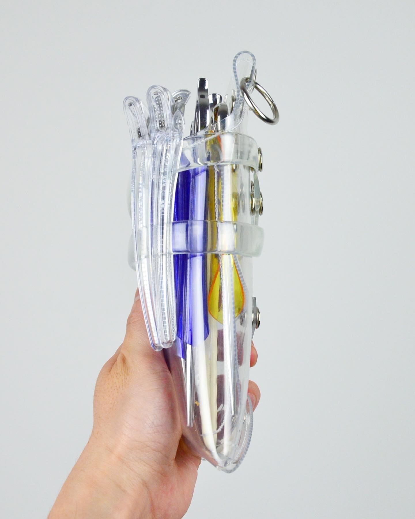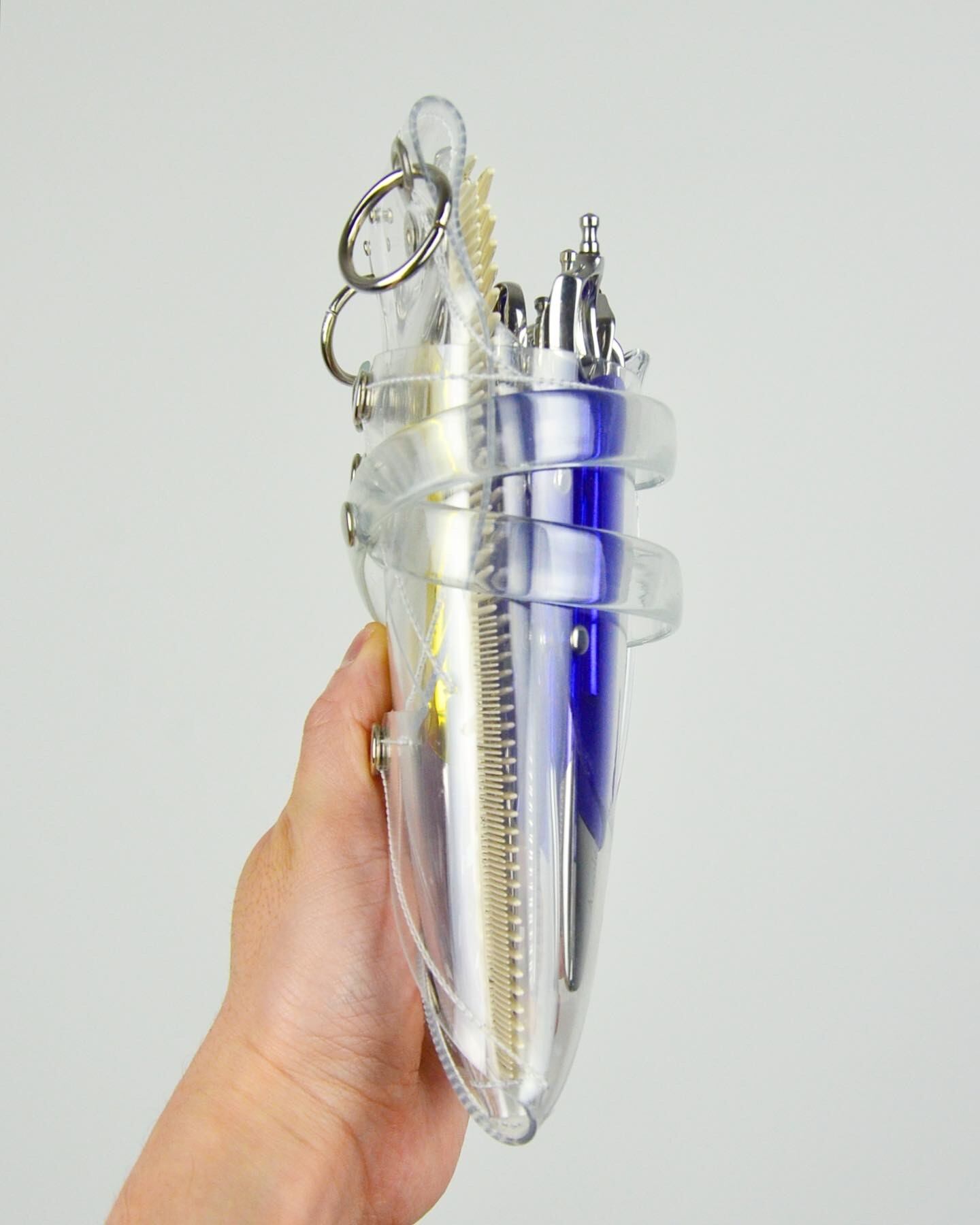 このシザーケースは、あなたのシザーを入れる事によって完成します。透明なシザーケースから仕事道具であるシザーが魅える事が最大のデザインの魅力となっています。