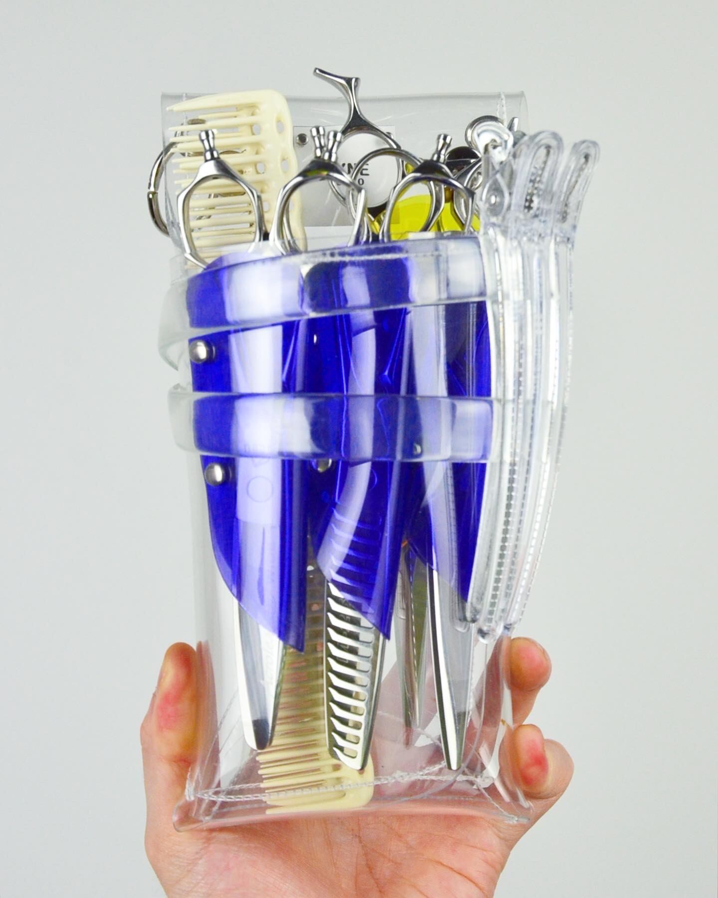 PVCの特性であるクリア(透明)である事で、美容師の仕事道具であるシザーのこれまでなかった魅せ方を提案しています。