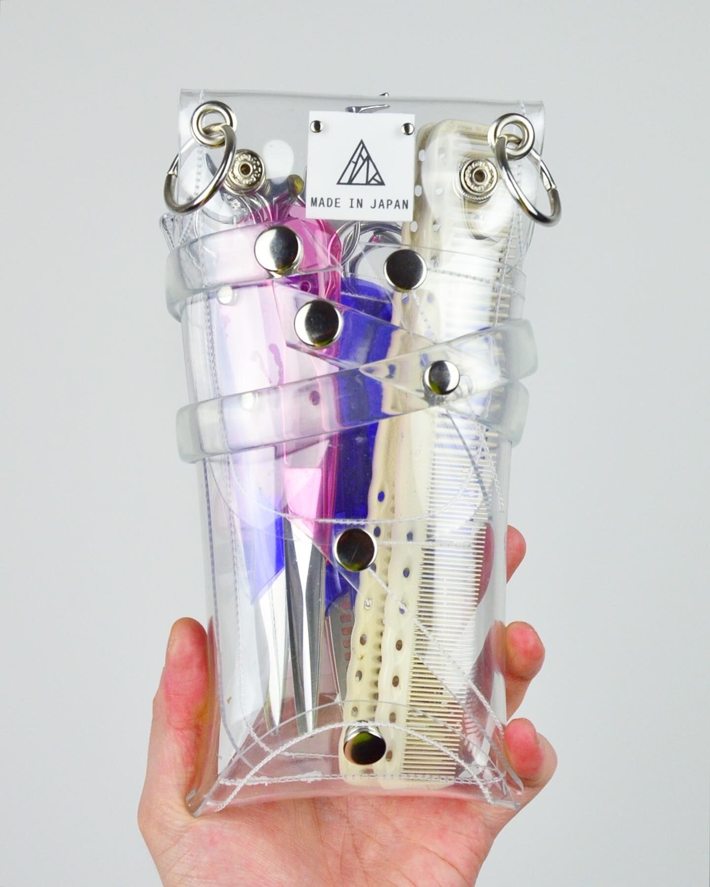 このシザーケースは、あなたのシザーを入れる事によって完成します。透明なシザーケースから仕事道具であるシザーが魅える事が最大のデザインの魅力となっています。