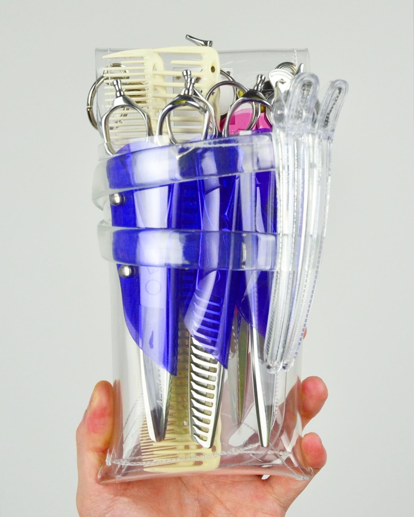 PVCの特性であるクリア(透明)である事で、美容師の仕事道具であるシザーのこれまでなかった魅せ方を提案しています。
