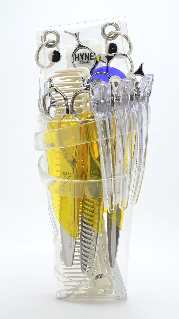 このシザーケースは、あなたのシザーを入れる事によって完成します。透明なシザーケースから仕事道具であるシザーが魅える事が最大のデザインの魅力となっています。