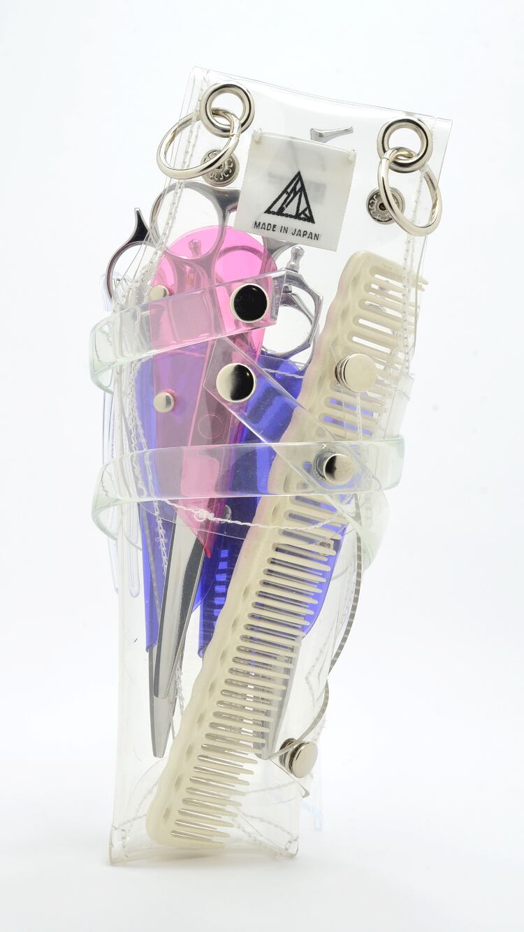 このシザーケースは、あなたのシザーを入れる事によって完成します。透明なシザーケースから仕事道具であるシザーが魅える事が最大のデザインの魅力となっています。