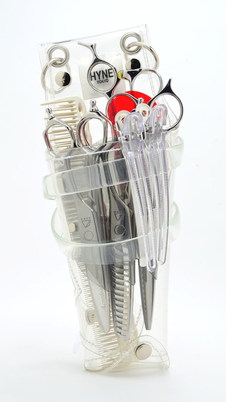 このシザーケースは、あなたのシザーを入れる事によって完成します。透明なシザーケースから仕事道具であるシザーが魅える事が最大のデザインの魅力となっています。