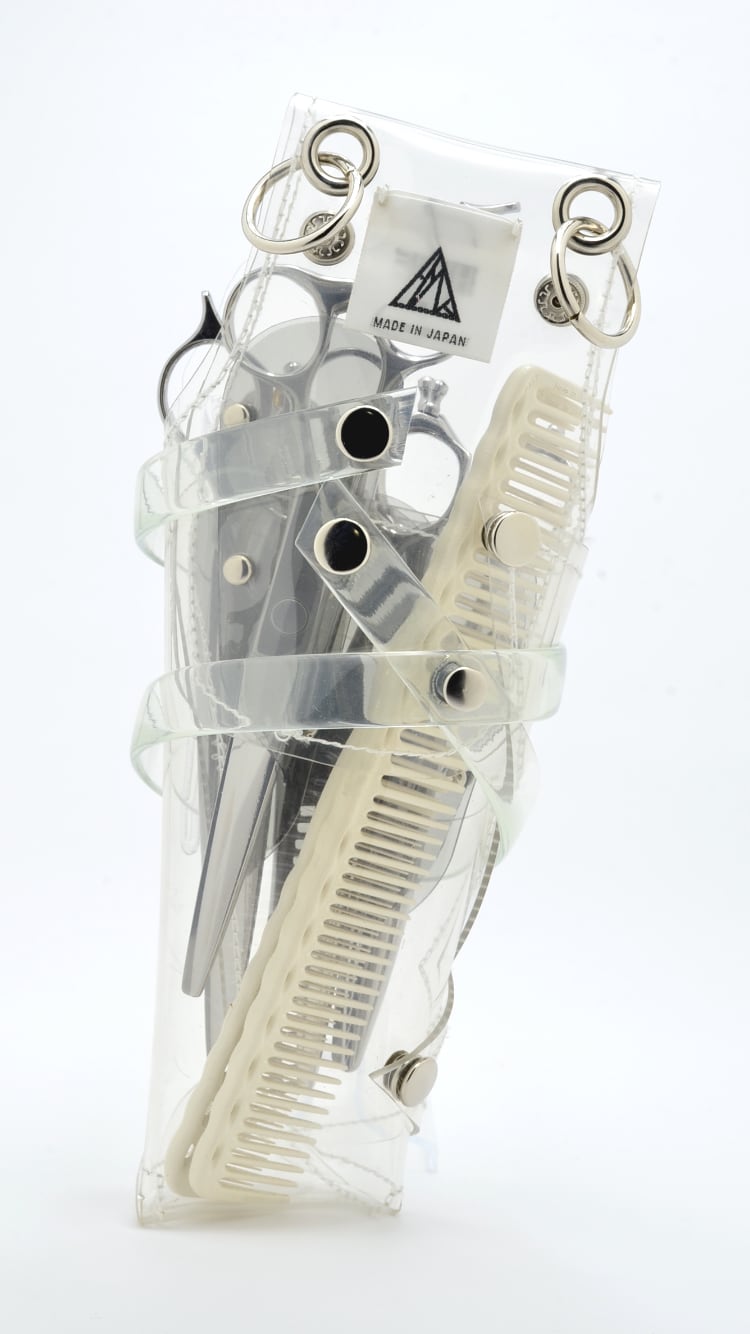 このシザーケースは、あなたのシザーを入れる事によって完成します。透明なシザーケースから仕事道具であるシザーが魅える事が最大のデザインの魅力となっています。