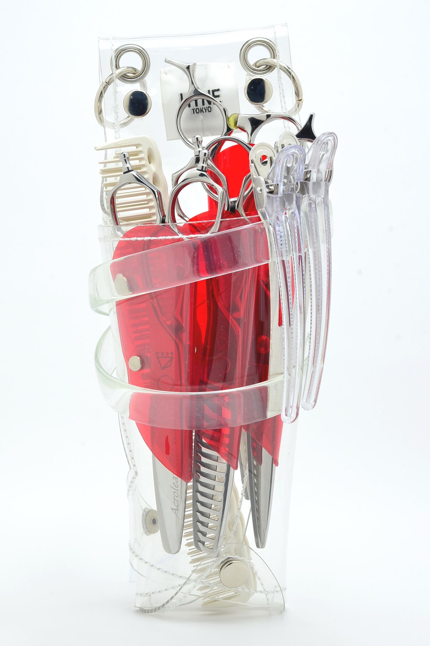 このシザーケースは、あなたのシザーを入れる事によって完成します。透明なシザーケースから仕事道具であるシザーが魅える事が最大のデザインの魅力となっています。