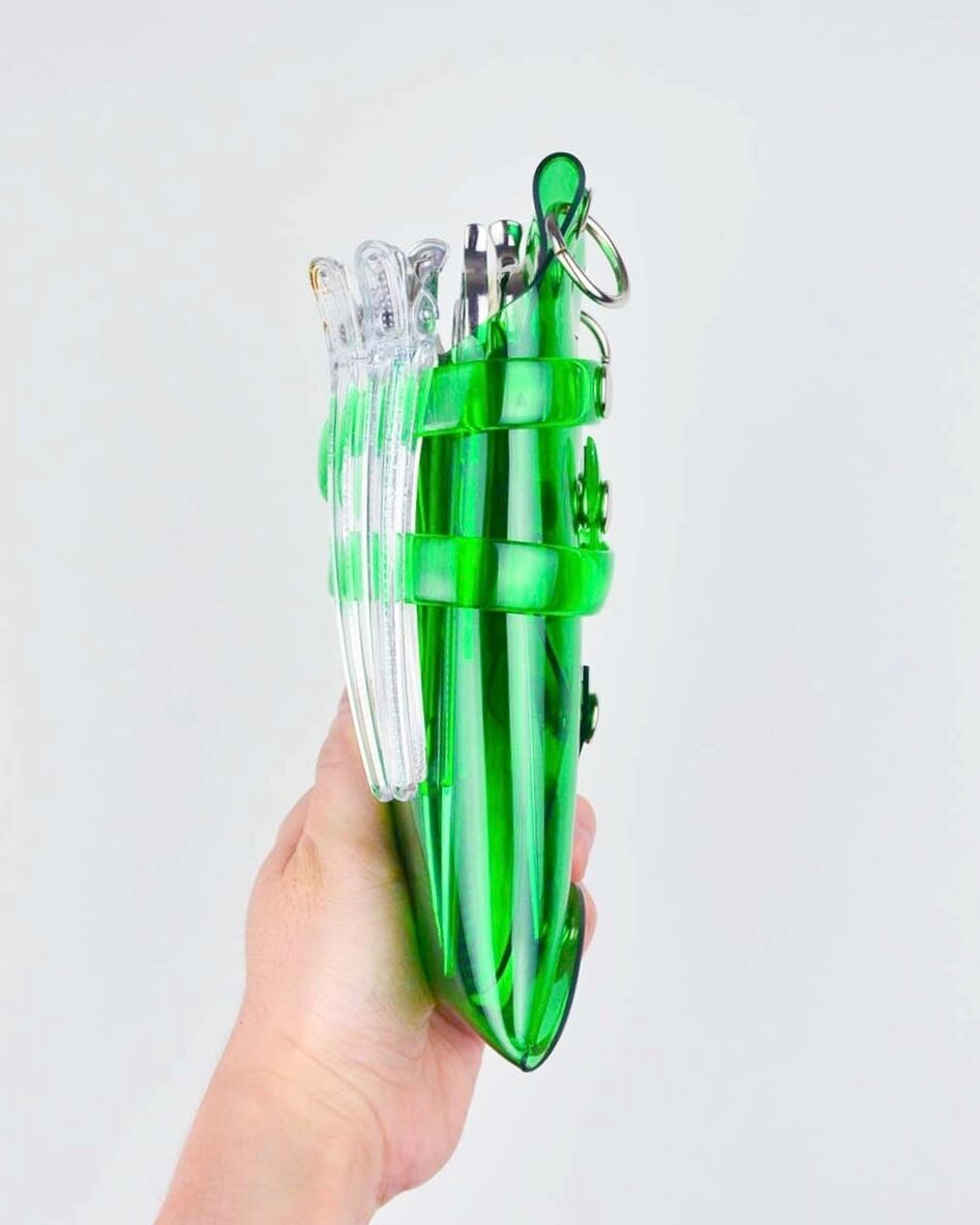 PVCの特性であるクリア(透明)である事で、美容師の仕事道具であるシザーのこれまでなかった魅せ方を提案しています。
