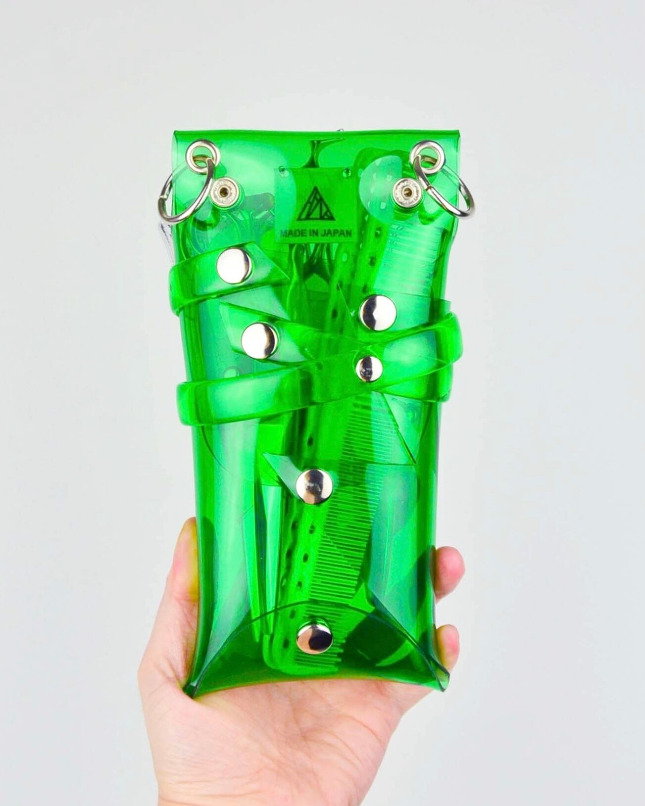 このシザーケースは、あなたのシザーを入れる事によって完成します。透明なシザーケースから仕事道具であるシザーが魅える事が最大のデザインの魅力となっています。