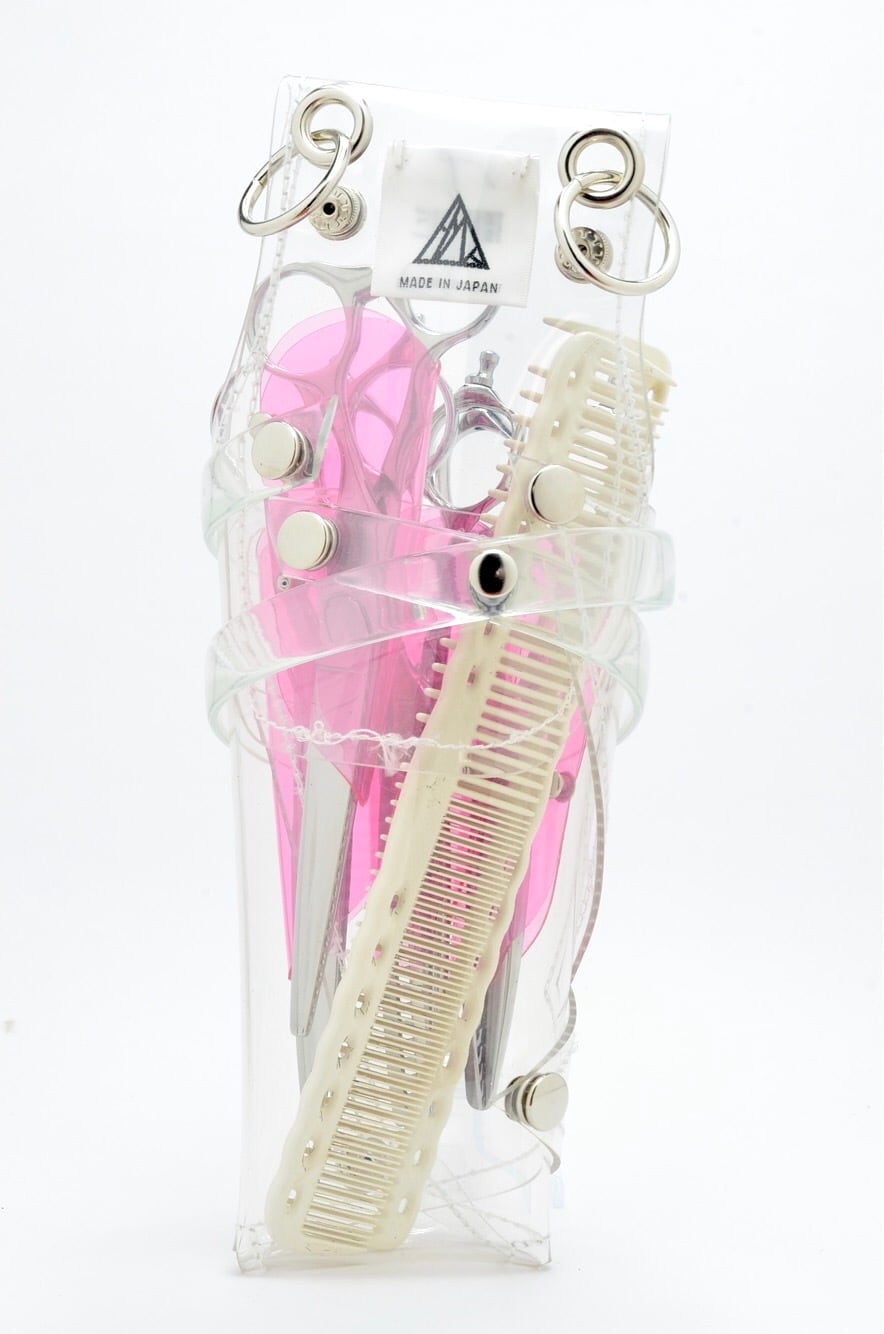 このシザーケースは、あなたのシザーを入れる事によって完成します。透明なシザーケースから仕事道具であるシザーが魅える事が最大のデザインの魅力となっています。