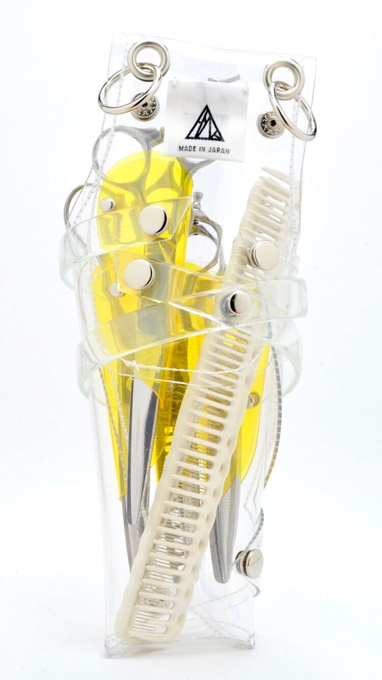 このシザーケースは、あなたのシザーを入れる事によって完成します。透明なシザーケースから仕事道具であるシザーが魅える事が最大のデザインの魅力となっています。