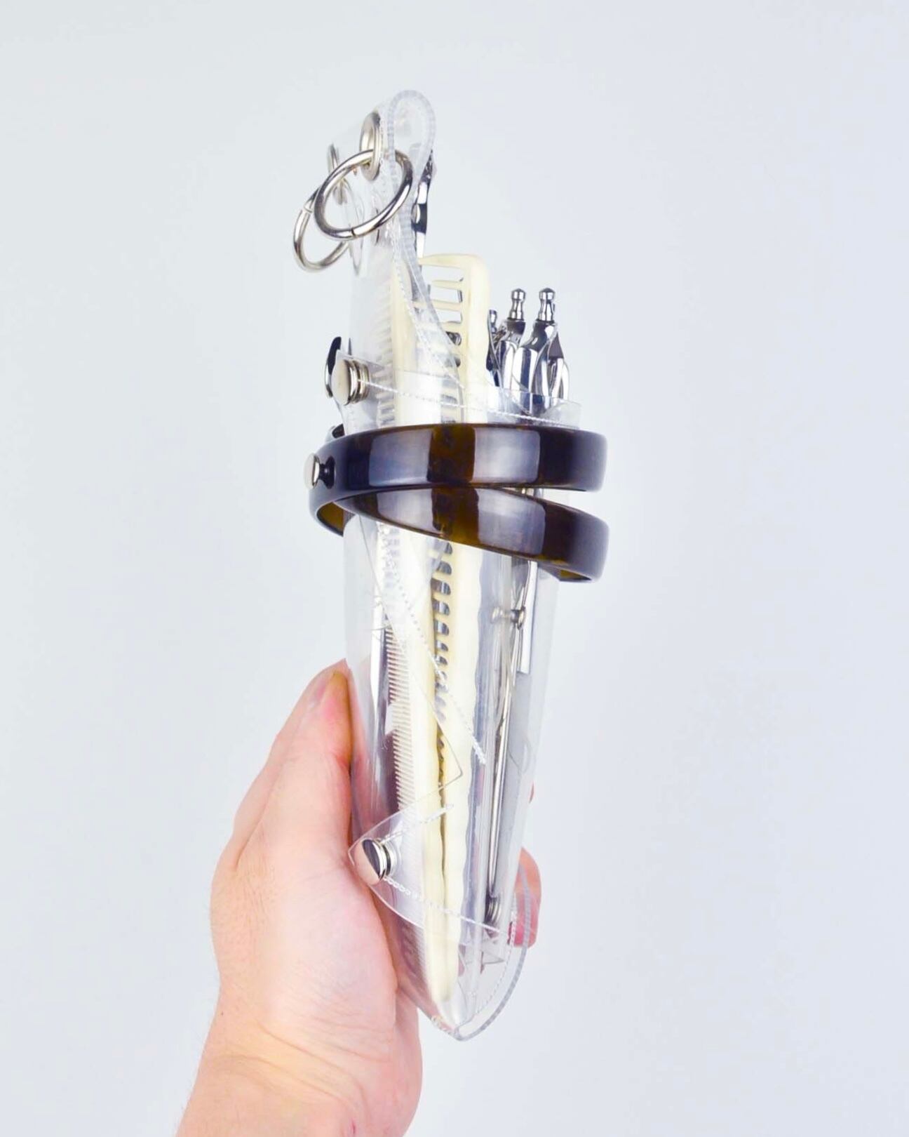 PVCの特性であるクリア(透明)である事で、美容師の仕事道具であるシザーのこれまでなかった魅せ方を提案しています。
