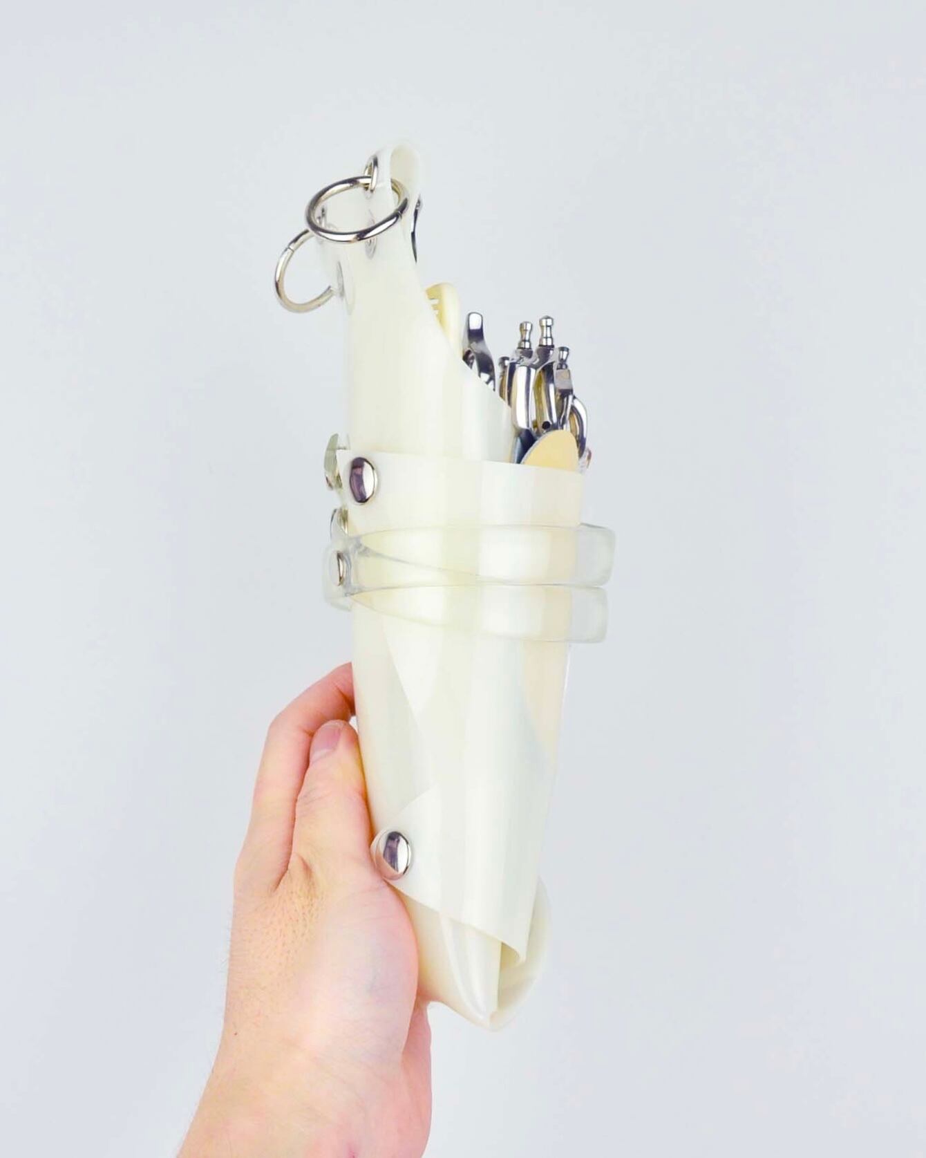 PVCの特性であるクリア(透明)である事で、美容師の仕事道具であるシザーのこれまでなかった魅せ方を提案しています。