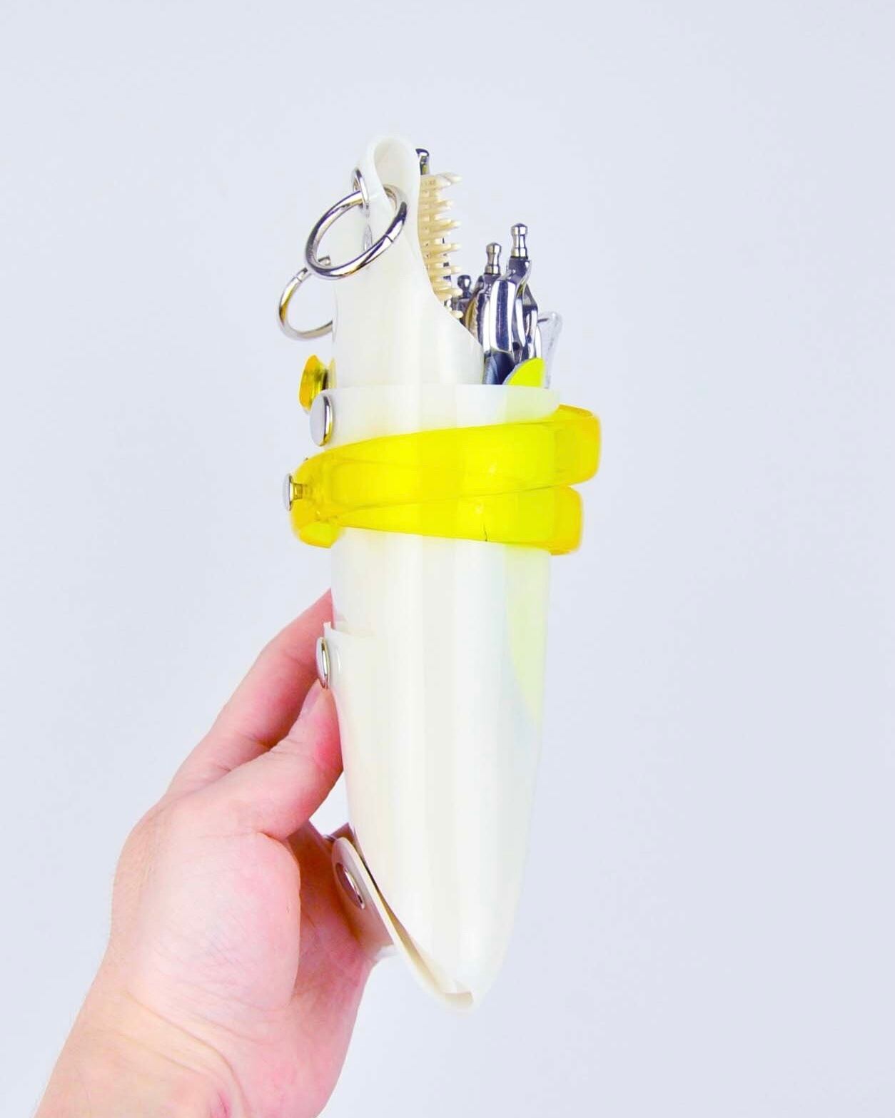 PVCの特性であるクリア(透明)である事で、美容師の仕事道具であるシザーのこれまでなかった魅せ方を提案しています。
