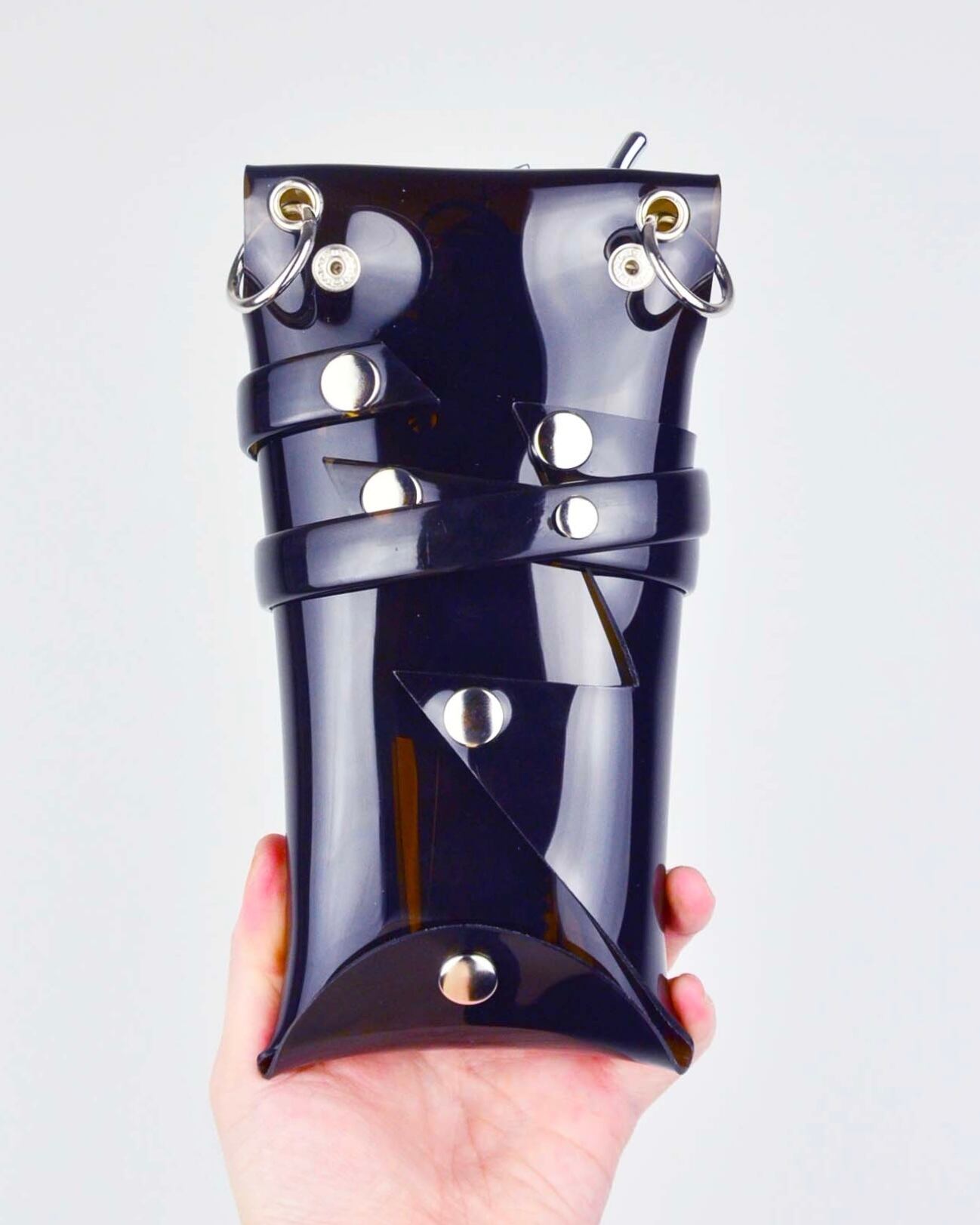 エナメルレザーは、1つからカスタムする事が可能です。クリアとレザーの異素材を組み合わせるカスタムです。
