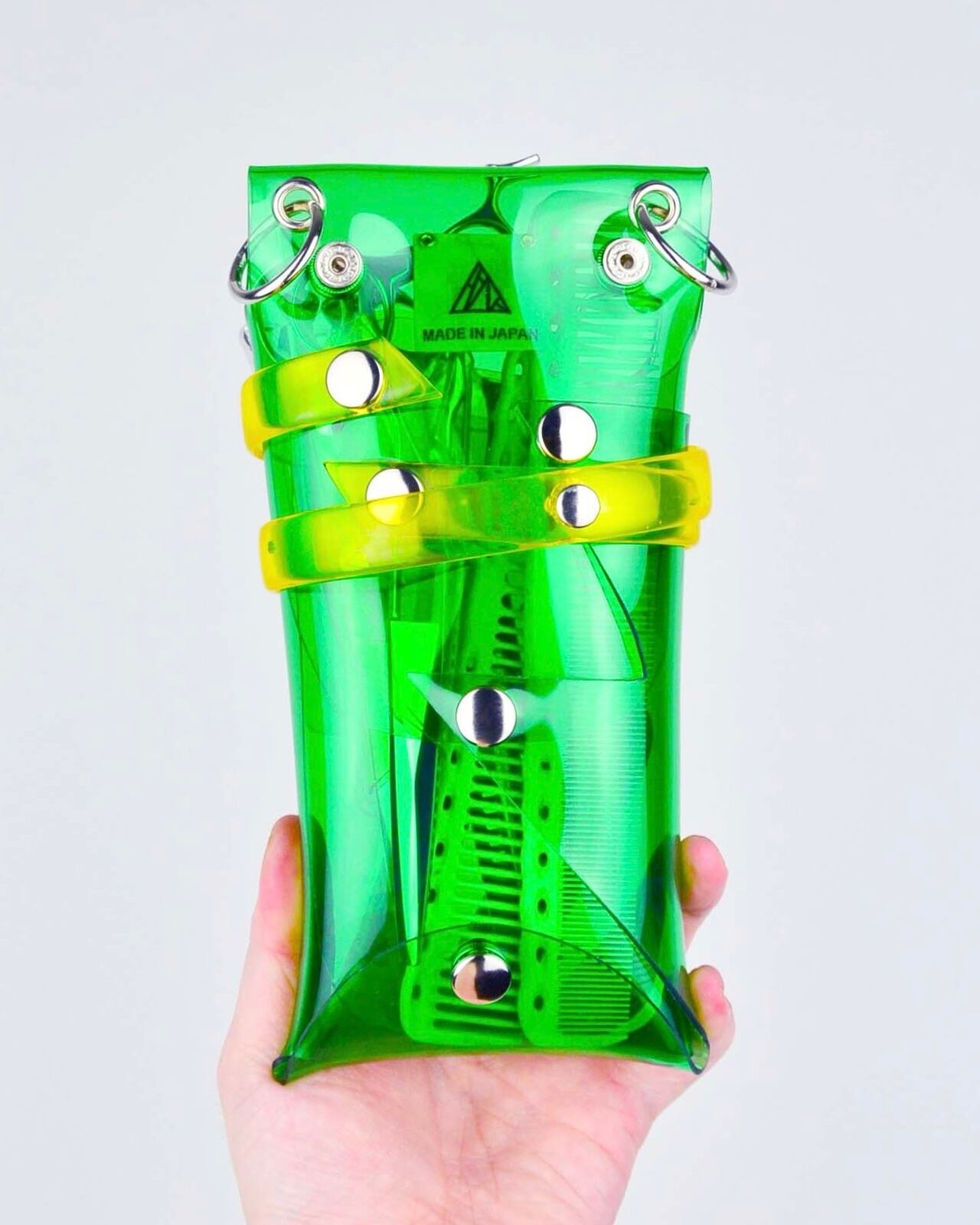 PVCの特性であるクリア(透明)である事で、美容師の仕事道具であるシザーのこれまでなかった魅せ方を提案しています。
