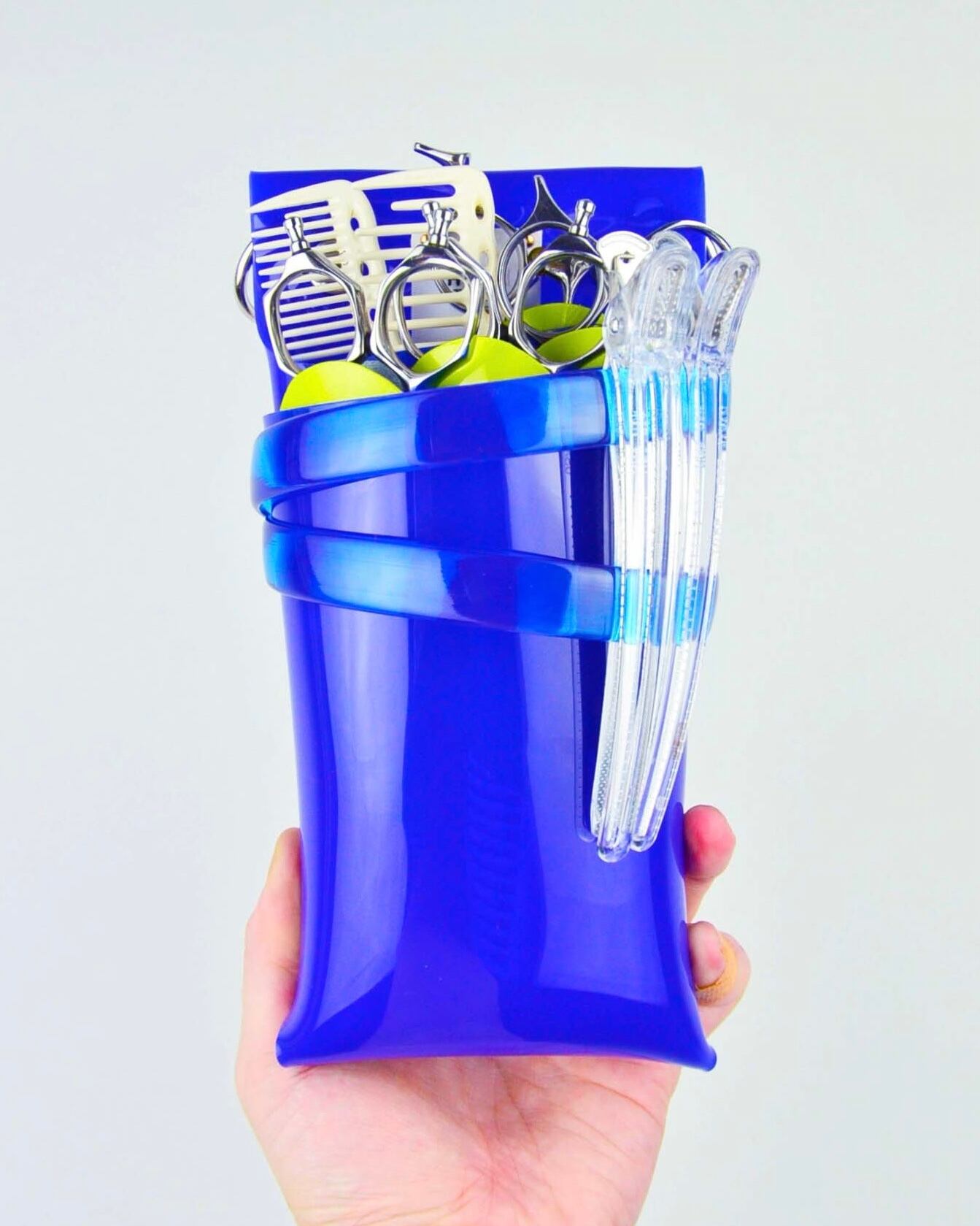 PVCの特性であるクリア(透明)である事で、美容師の仕事道具であるシザーのこれまでなかった魅せ方を提案しています。