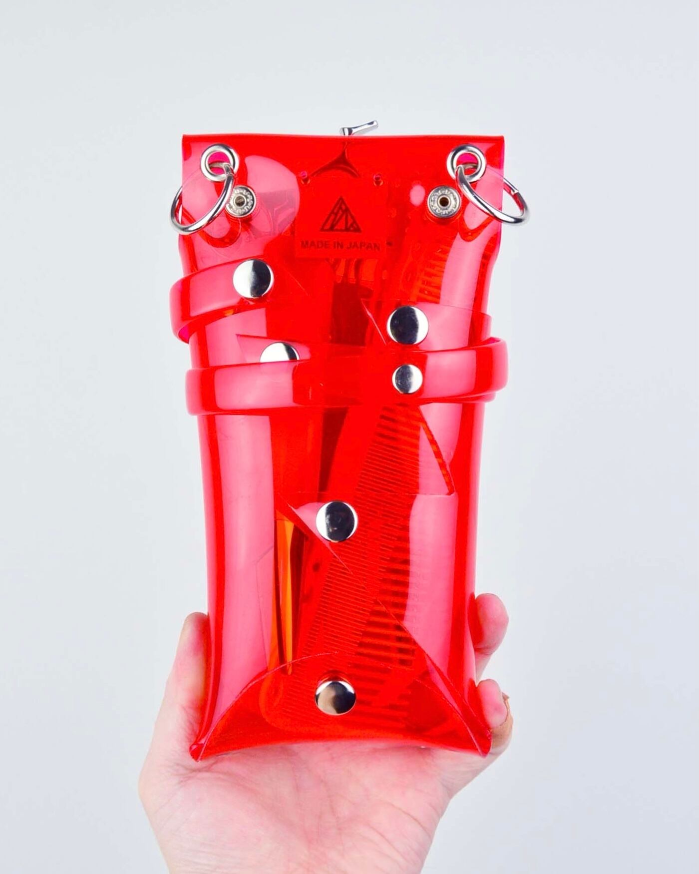 このシザーケースは、あなたのシザーを入れる事によって完成します。透明なシザーケースから仕事道具であるシザーが魅える事が最大のデザインの魅力となっています。