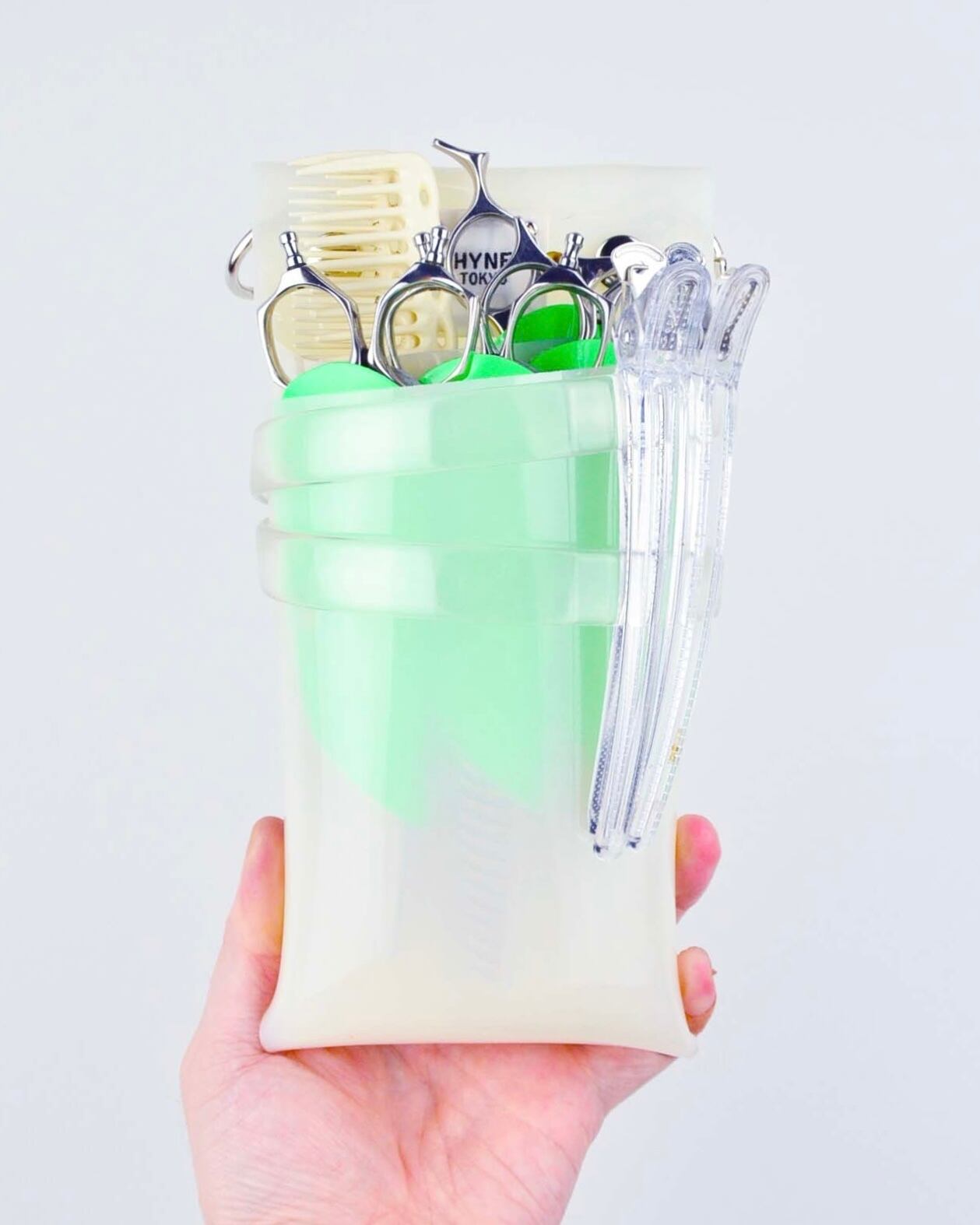 内田聡一郎さんと浦さやかさんが代表の東京の人気サロン「QUQUTOKYO」と世界で初めて"透明なシザーケース"を考案開発した「HYNETOKYO」のコラボプロダクトになります。