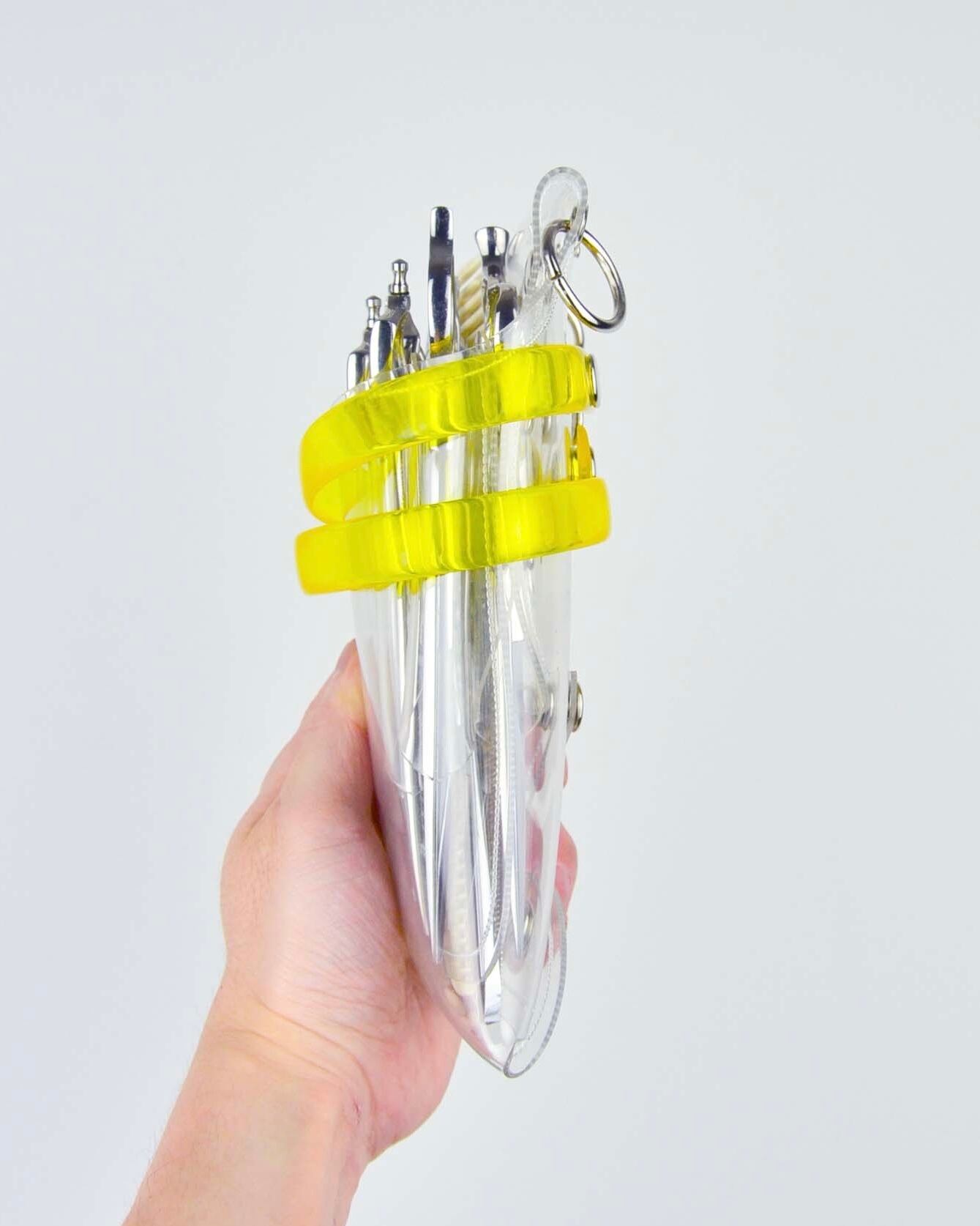 このシザーケースは、あなたのシザーを入れる事によって完成します。透明なシザーケースから仕事道具であるシザーが魅える事が最大のデザインの魅力となっています。