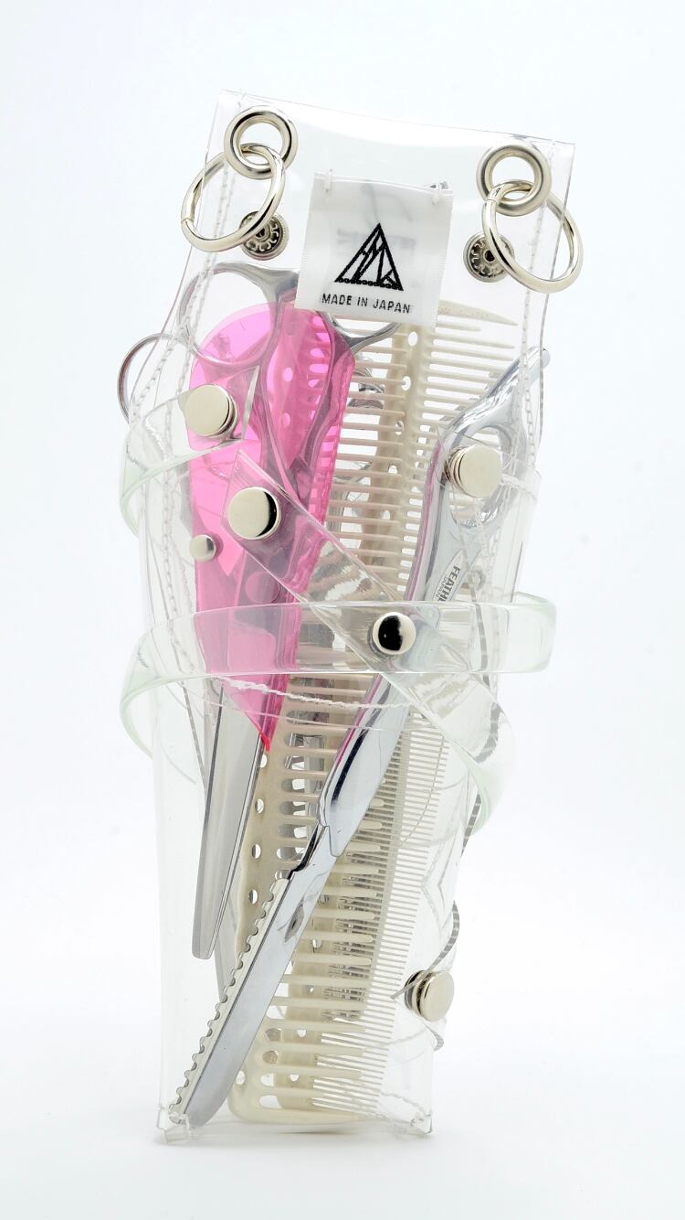 このシザーケースは、あなたのシザーを入れる事によって完成します。透明なシザーケースから仕事道具であるシザーが魅える事が最大のデザインの魅力となっています。