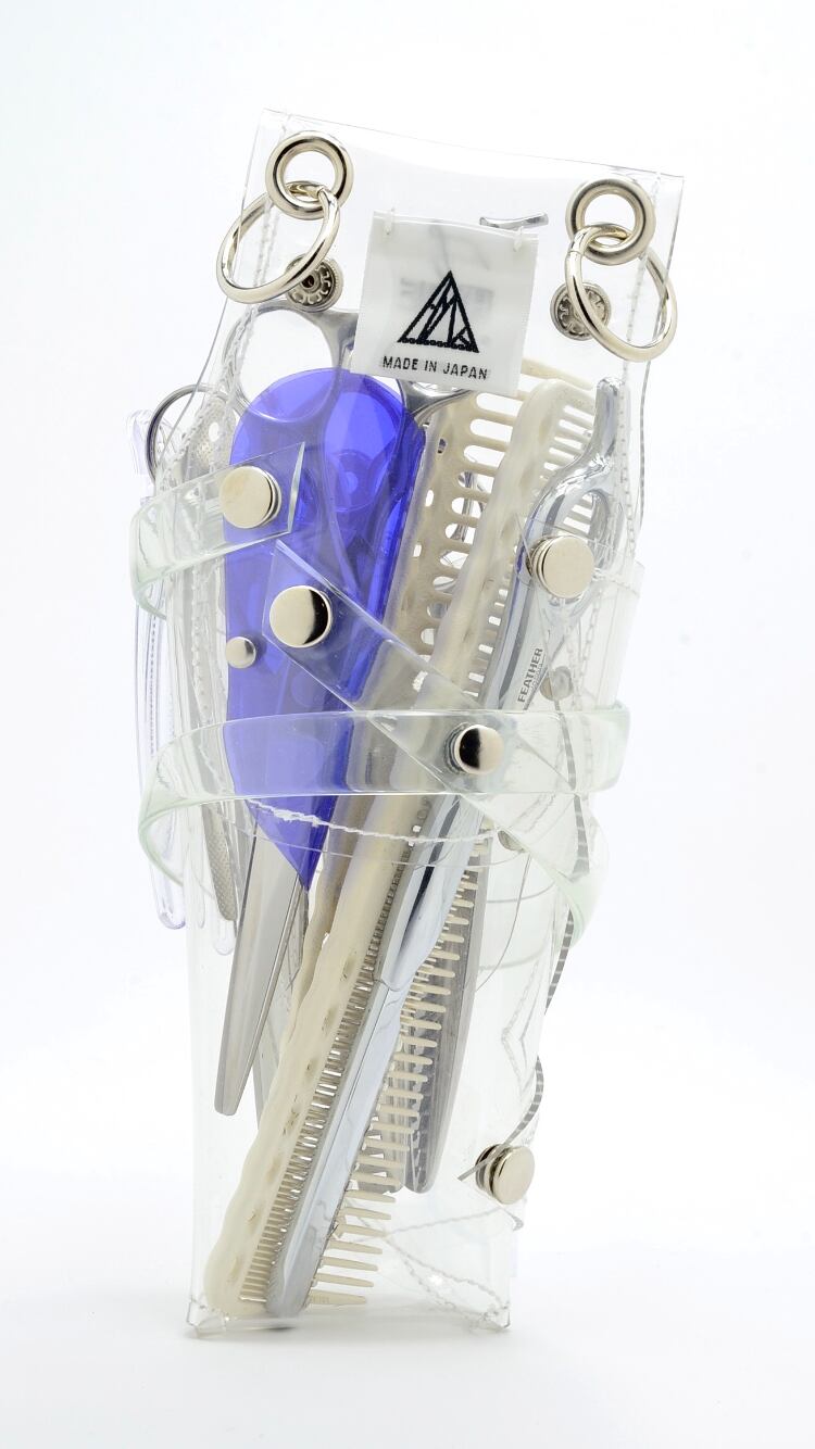 このシザーケースは、あなたのシザーを入れる事によって完成します。透明なシザーケースから仕事道具であるシザーが魅える事が最大のデザインの魅力となっています。