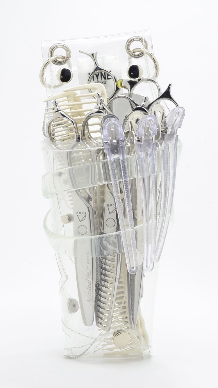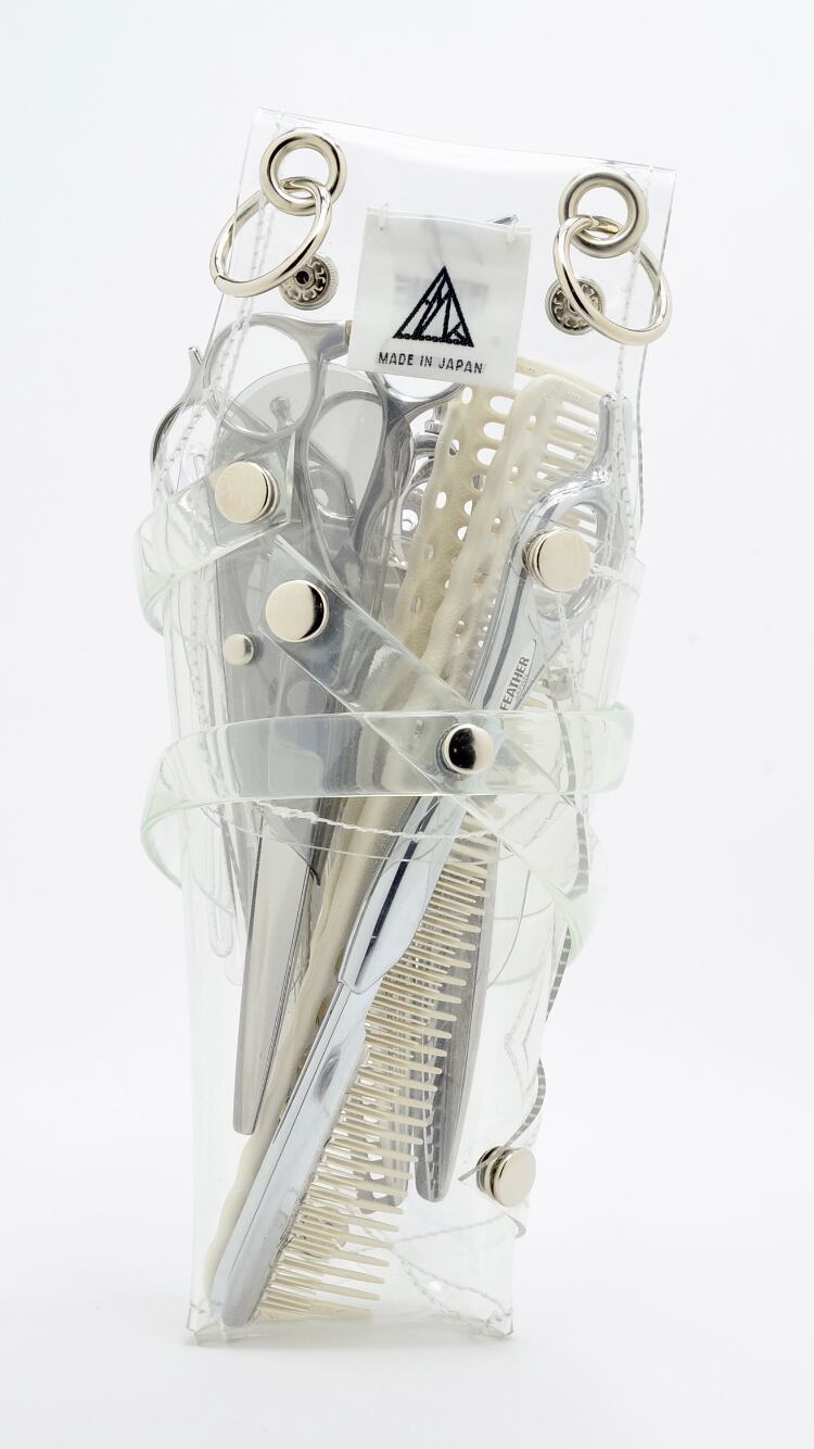 このシザーケースは、あなたのシザーを入れる事によって完成します。透明なシザーケースから仕事道具であるシザーが魅える事が最大のデザインの魅力となっています。